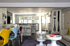 четырехэтажного таунхауса в викторианском стиле, c внутренним двориком, в центре Лондона, возле Гайд-Парка. Мраморные и дубовые полы, мягкая цветовая палитра интерьера и деликатные контрасты мягкой мебели создают впечатление уюта и комфорта. И даже минималистическая кухня с дизайнерским меблированием столовой гармонично вписывается в общую концепцию "пригламуренной" эклектики. Общая площадь таунхауса 2,800 кв. футов.
