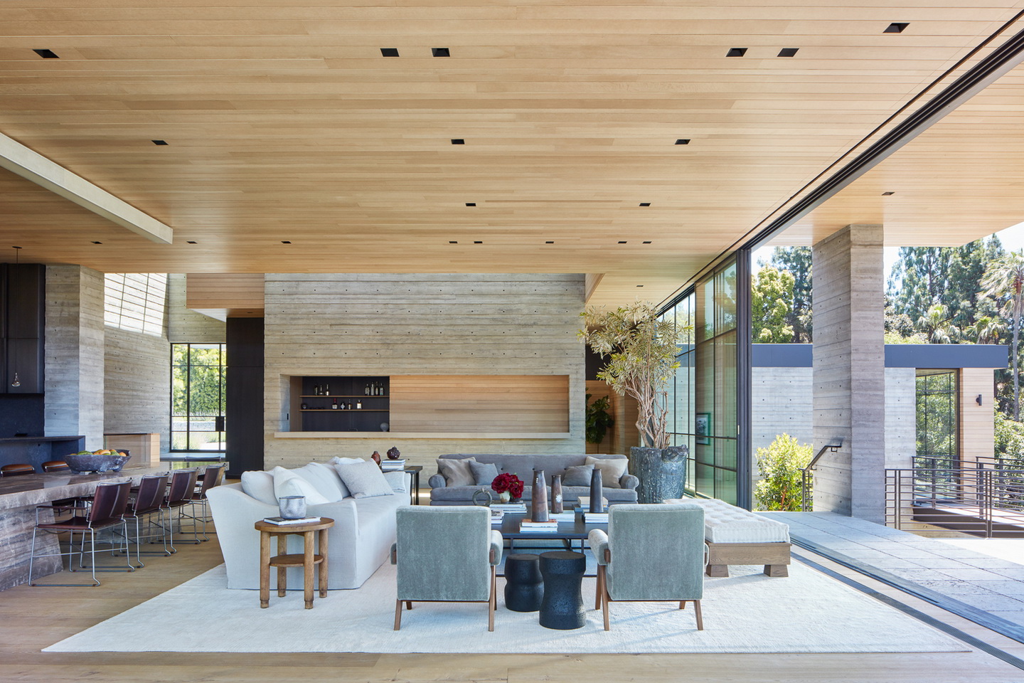 best exemplified by the widespread use of board-formed concrete walls, white oak